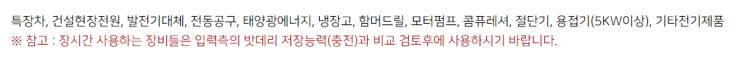 다르다 홈페이지를 보면 건설현장전원, 발전기대체, 전동공구, 태양광에너지, 냉장고, 함머드릴, 모터펌프, 컴프레서, 절단기, 용접기, 기타 전기제품은 유사계단판을 사용할 수 있다고 나오는데 기타 전기제품이라는 게 무엇일까요?