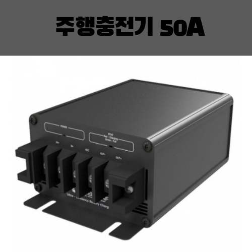 주행 충전기는 시가잭으로 충전이 가능한 낮은 A의 주행 충전기도 있지만 캠핑카 베터리를 시가잭으로 충전하겠다면 안 하니만 못합니다. 배터리 용량이 300A라고 하면 단순한 계산으로는 25A 주행충전기로 12시간을 50A로는 6시간을 충전해야 한다는 간단한 계산이 나오는데요. 25A라고 해도 최대로 충전될 때 25A라는 것이지 평균 25A라는 것이 아니기 때문에 단순히 300/25 또는 300/50으로 계산한 시간보다는 더 많이 걸리게 됩니다.