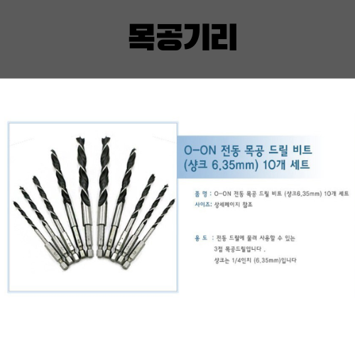 목공기리는 끝이 고정이 잘 되도록 쬬족하게 되어 있습니다. 일반 철기리를 사용해도 무방하지만 끝이 뾰족하여 목공에 기리를 낼때 정확하게 타공을 할 수 있습니다.