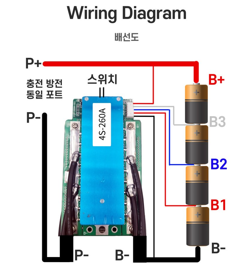 사진은 보호회로까지 전부 연결한 후 사진 이긴 하지만 연결 자체는 그렇게 어렵지 않아요.