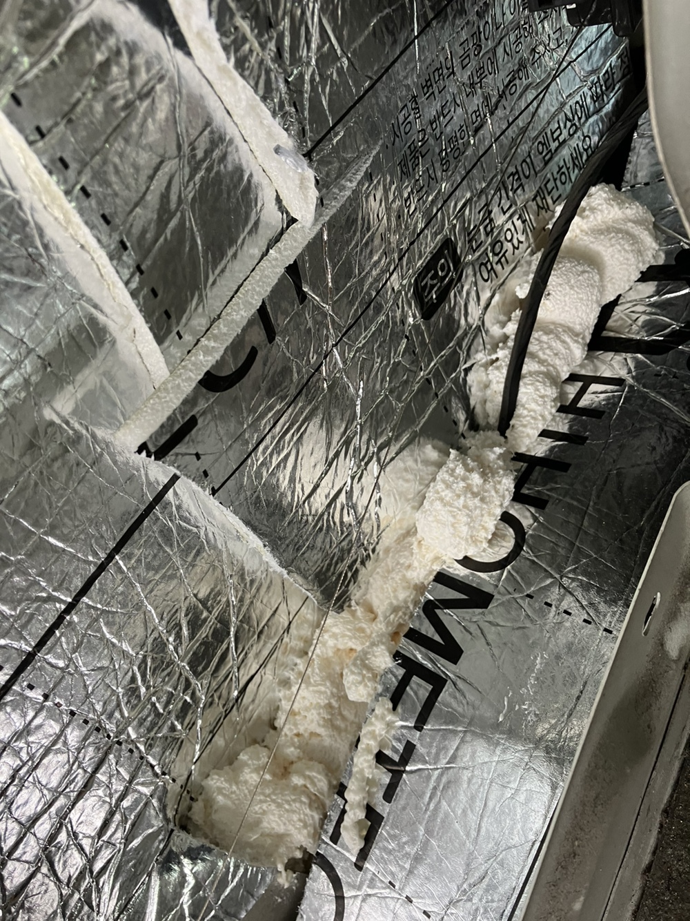 단열재를 붙이기 어려운 부분은 우레탄 폼으로 꼼꼼히 마감을 해주면 좋습니다.