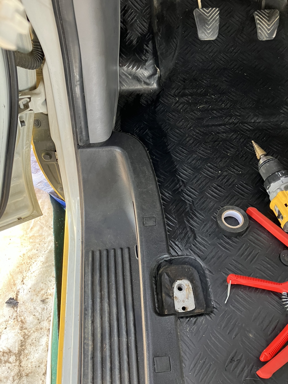 메인배터리에 연결하기 위해서는 보닛에서 운전선 쪽으로 전선이 통과할 수 있도록 드릴로 구멍을 내줘야 합니다.