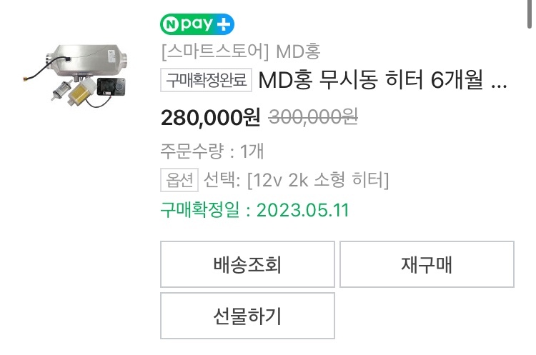 일단 제 캠핑카에 장착한 무시동 히터는 5월에 구입을 했는데요. 당시에 280,000원을 주고 구입을 했습니다. 물론 지금도 잘 사용하고 있고요~ 저렴한 무시동 히터는 200,000원 안쪽으로도 구입을 할 수 있는데 확실히 소리부터가 다릅니다~